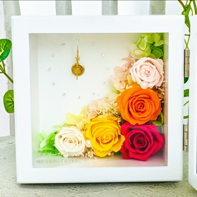 こちらはプリザーブドフラワーのフレーム付き花時計🌸
